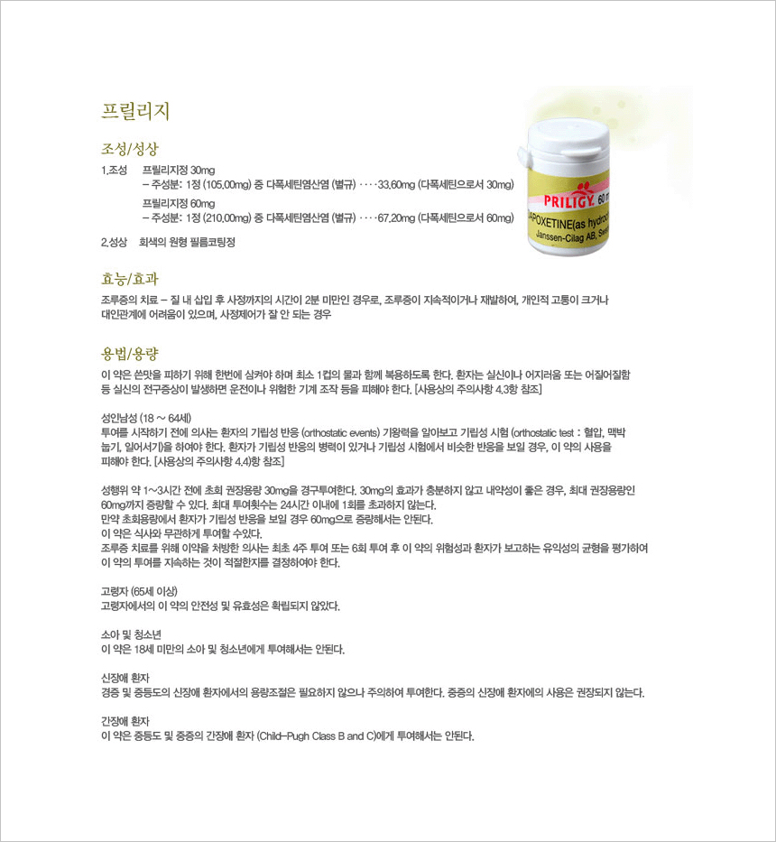프릴리지60mg 1통(10정) + 2통(20정) : 130,000 원